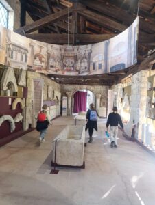 U Arheološkom muzeju razgledali su stalni postav i izložbu u sklopu obilježavanja 1100. obljetnice Hrvatskog Kraljevstva pod nazivom Ecclesia et Regnum, koja okuplja najvažnije eksponate iz vremena hrvatskih narodnih vladara. Učenici su imali priliku vidjeti brojne povijesne izvore iz ranog srednjeg vijeka te razgledati vrijedne spomenike od iznimne nacionalne važnosti, koje su do sada upoznali samo putem fotografija u udžbenicima, poput Bašćanske ploče, natpisa kneza Trpimira s Rižinica (lokalitet koji su posjetili prošle školske godine), prijepisa njegove darovnice i mnogih drugih eksponata koji svjedoče o hrvatskoj povijesnoj baštini.