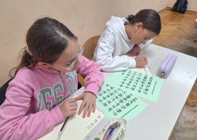 U sklopu radionice učenici su se i praktično okušali u pisanju glagoljicom, upoznali su osnovne tehnike kaligrafije te su izrađivali straničnike (bookmarks) koje su za uspomenu ponijeli sa sobom. Učenici su zaigrali i memory te kroz igru usvajali glagoljičnu azbuku.