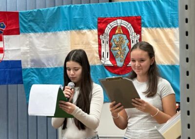Učenici petih i sedmih razreda krasnoslovili su domoljubne stihove o nastanku Republike Hrvatske, o simbolima hrvatske državnosti te o gradu Vukovaru kao neugaslom simbolu žrtve, zajedništva i trajne nade. Njihovi su recitali podsjetili da se bolne rane 1991. godine ne zaboravljaju te da se zločini počinjeni tijekom Domovinskog rata nikada ne smiju ponoviti. Učenici su izveli i stihove posvećene ljepotama hrvatskog krajolika i posebnostima koje čine našu domovinu jedinstvenom.